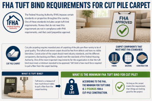 The Federal Housing Authority (FHA) imposes certain standards on properties throughout the country. One of these standards includes carpet tuft bind requirements. Homes that do not meet this requirement are not in compliance with FHA requirements, and that could jeopardize approval. Cut pile carpeting requires manufacturers of carpeting of the pile yarn floor variety to […]